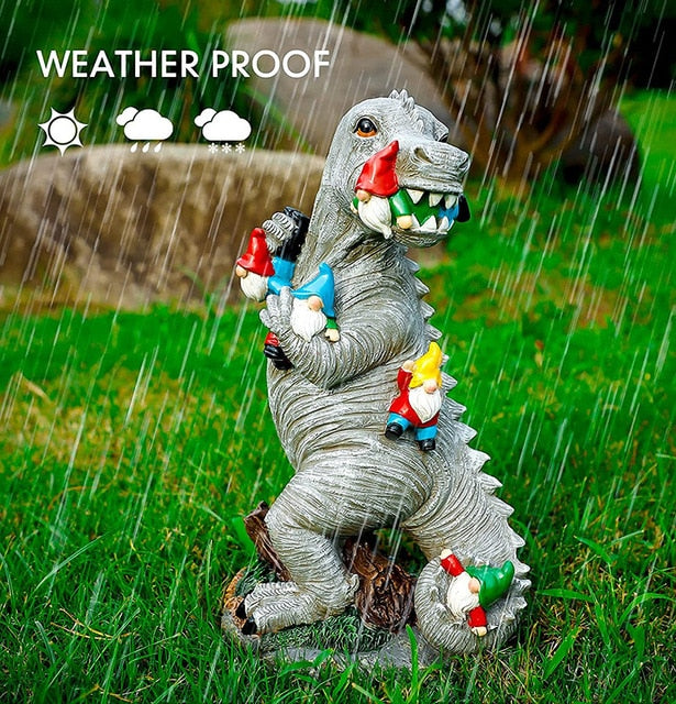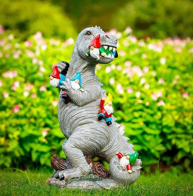 Welcome a unique and playful touch to your outdoor space with this amazing 1pc Resin Dinosaur Statue. Crafted from the highest quality resin material, it features a lively design of a dinosaur-eating gnomes garden decor and brings delight to any garden, tree, flower bed, fence, or sidewalk area. In addition to its fun design, this statuette has been specially painted in bright colors with UV-resistant paint for long-lasting use. You can also gift it to family and friends on special occasions such as Christmas, Thanksgiving, or Mother’s Day. With its durable construction and captivating design, the 1pc Resin Dinosaur Statue will be an eye-catching piece that creates an intriguing atmosphere to set the tone of your outdoor space.